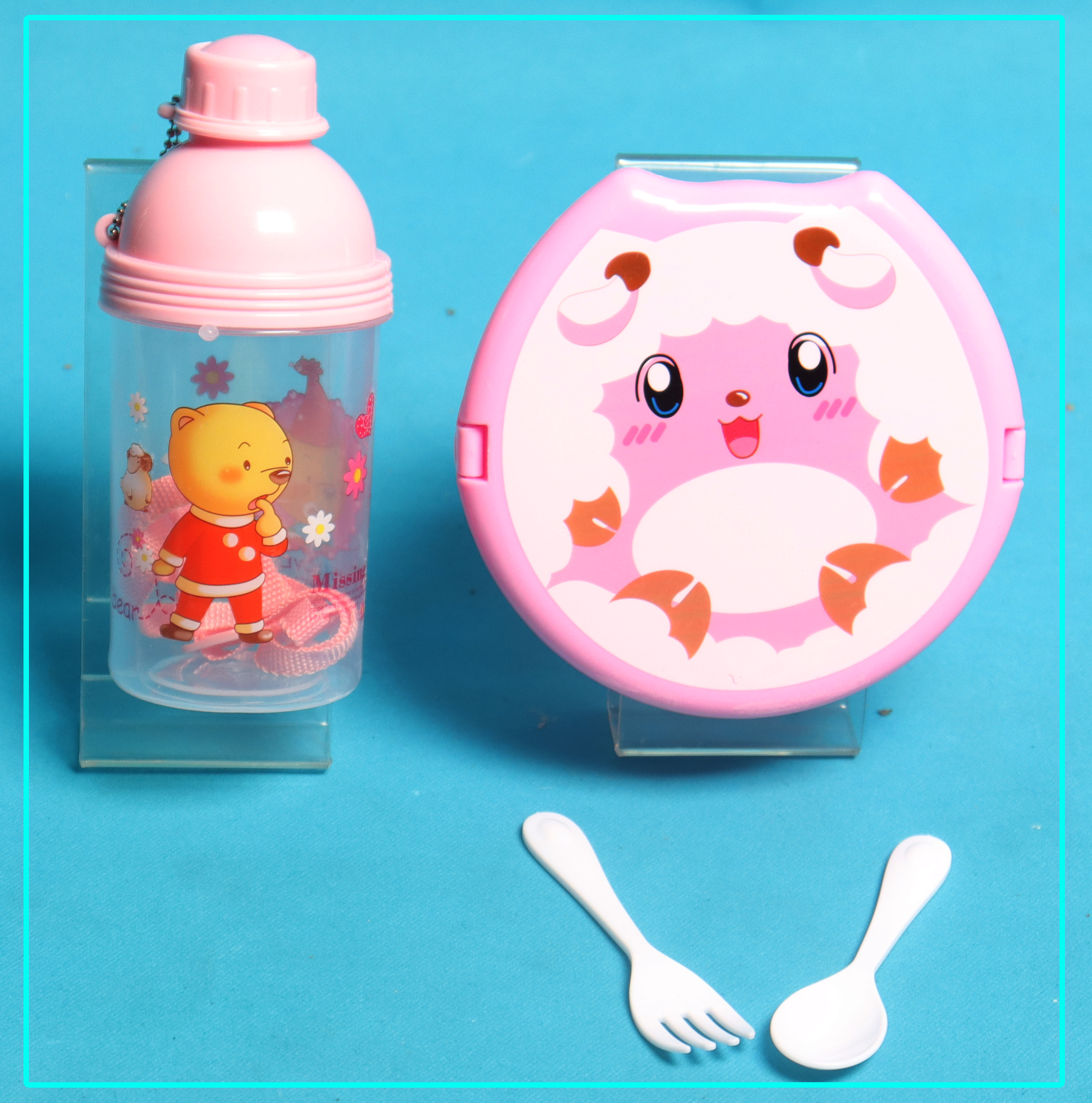 هذه مجموعة طعام للأطفال مبهجة وملونة تجمع بين مطارة مياه وعلبة طعام بتصميم متناسق ومصنعة من بلاستيك متين وآمن صحيًا.