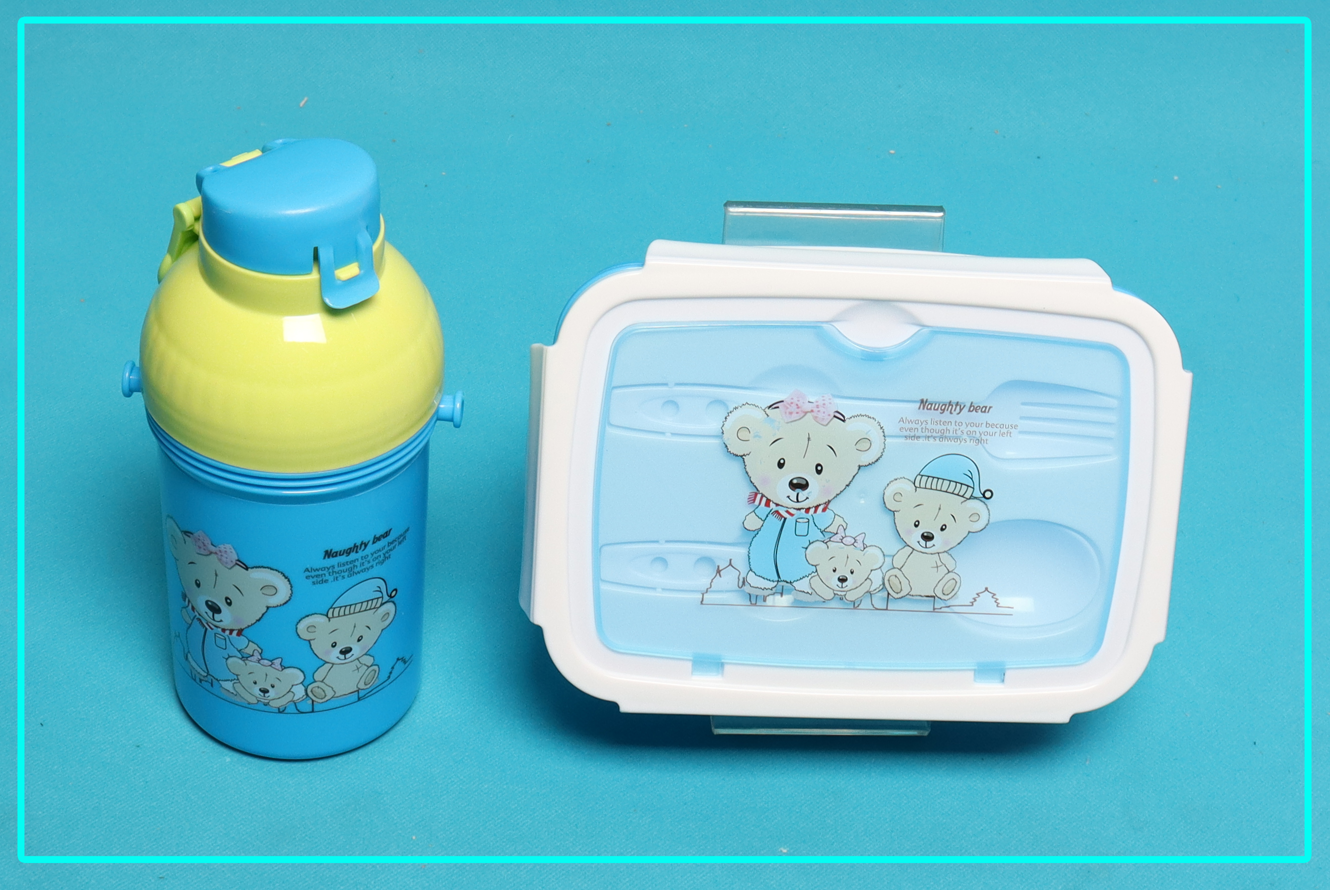 مجموعة مزينة برسومات دببة لطيفة، ستجعل وقت الغداء أكثر متعة لطفلك. مثالية للاستخدام في المدرسة أو الرحلات أو أي مناسبة أخرى.
